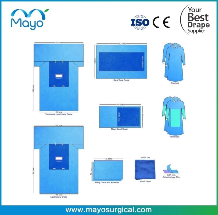 MAYO’s Laparotomy Packs specially designed for precision, safety, and efficiency in surgeries. Crafted from high-quality non-woven SMS and SMMS materials, these sterile disposable packs ensure infection control and maintain cleanliness in the operating room. Each pack includes a laparotomy drape, mayo stand cover, adhesive drape towels, and more, with options for full customization to meet your surgical needs. Trust Surgeine to streamline your procedures and enhance patient care.